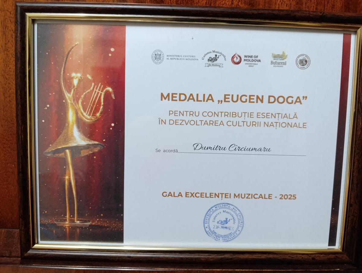 În cadrul unei ceremonii speciale a Uniunii Muzicienilor din Moldova - Gala Excelențeu Muzicale 2025, ediția VII-a, a fost inaugurată medalia „Eugen Doga”, oferită dirijorului simfonic Dumitru Cîrciumaru, în semn de apreciere pentru contribuția remarcabilă la valorificarea creației marelui compozitor Eugen Doga prin digitalizarea operei muzicale a maestrului, facilitând astfel păstrarea, promovarea și accesibilitatea patrimoniului său artistic pentru generațiile viitoare.